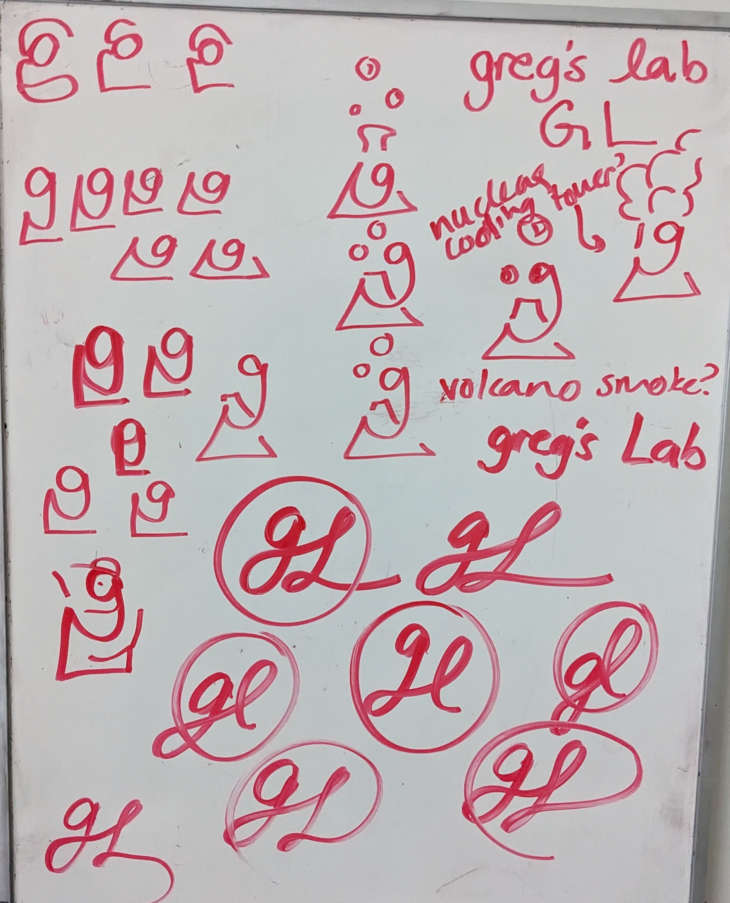 The first names were "gregomatic" and "Greg's Lab" so I was using those letters at first. Eventually for the pen drawings